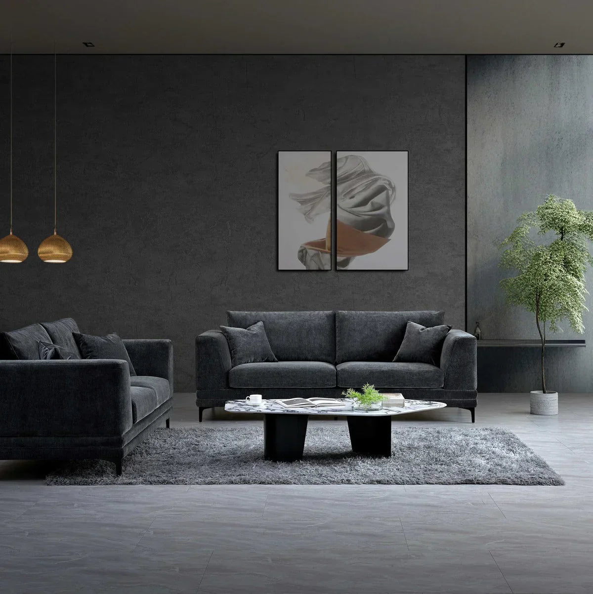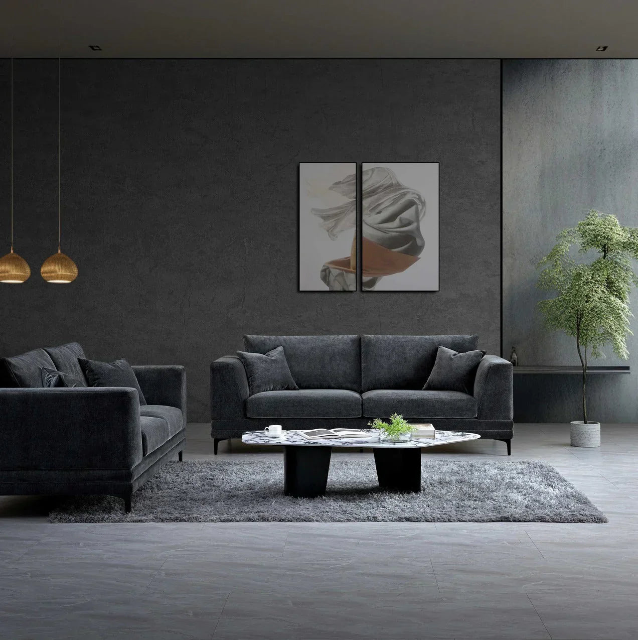 Lenox 3 Seater Sofa in Steel Velvet